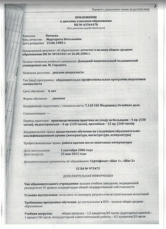 Пятаева Маргарита Витальевна